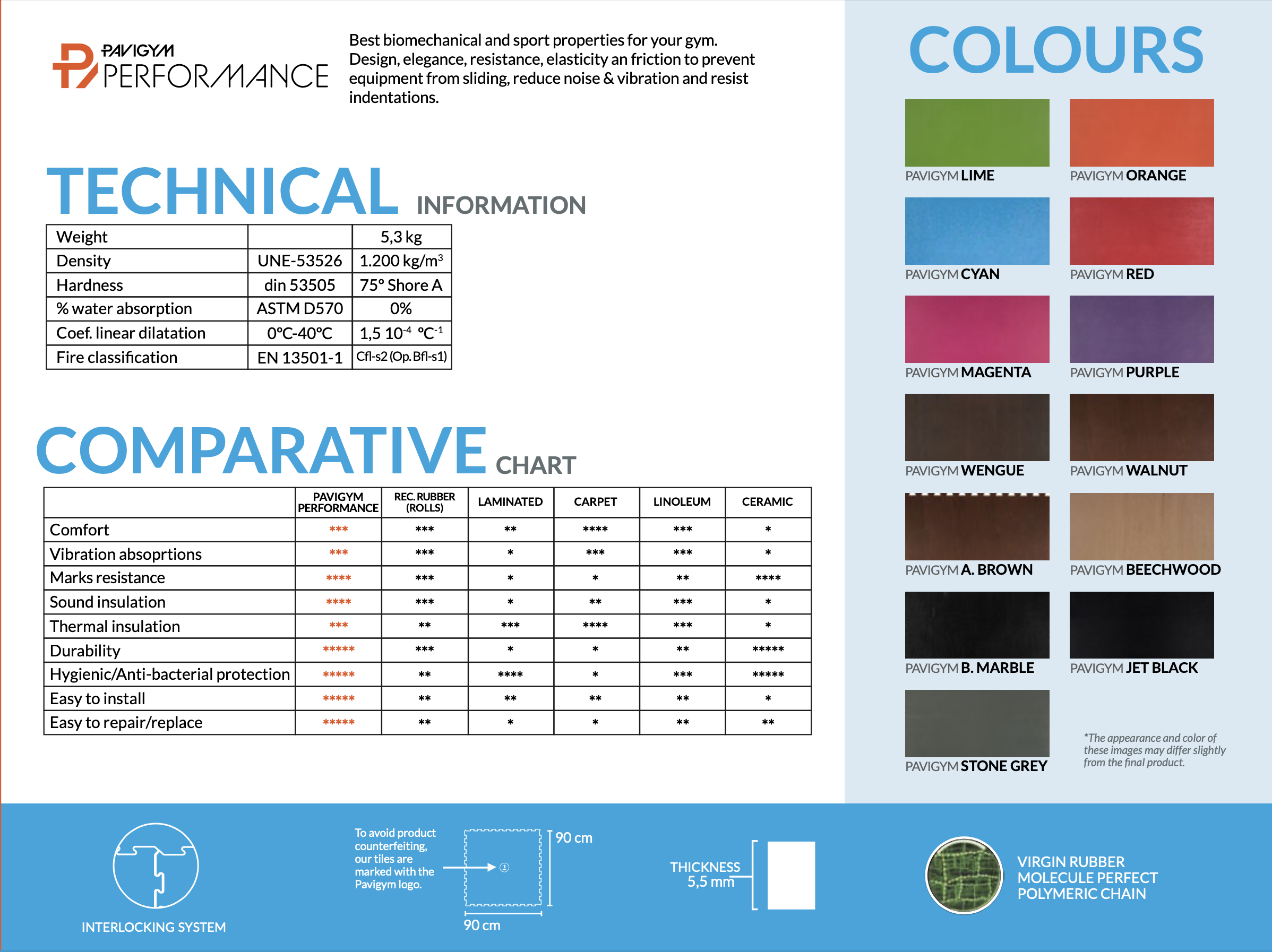 - Absorbs the impact of heavy equipment such as free weights and medicine balls.